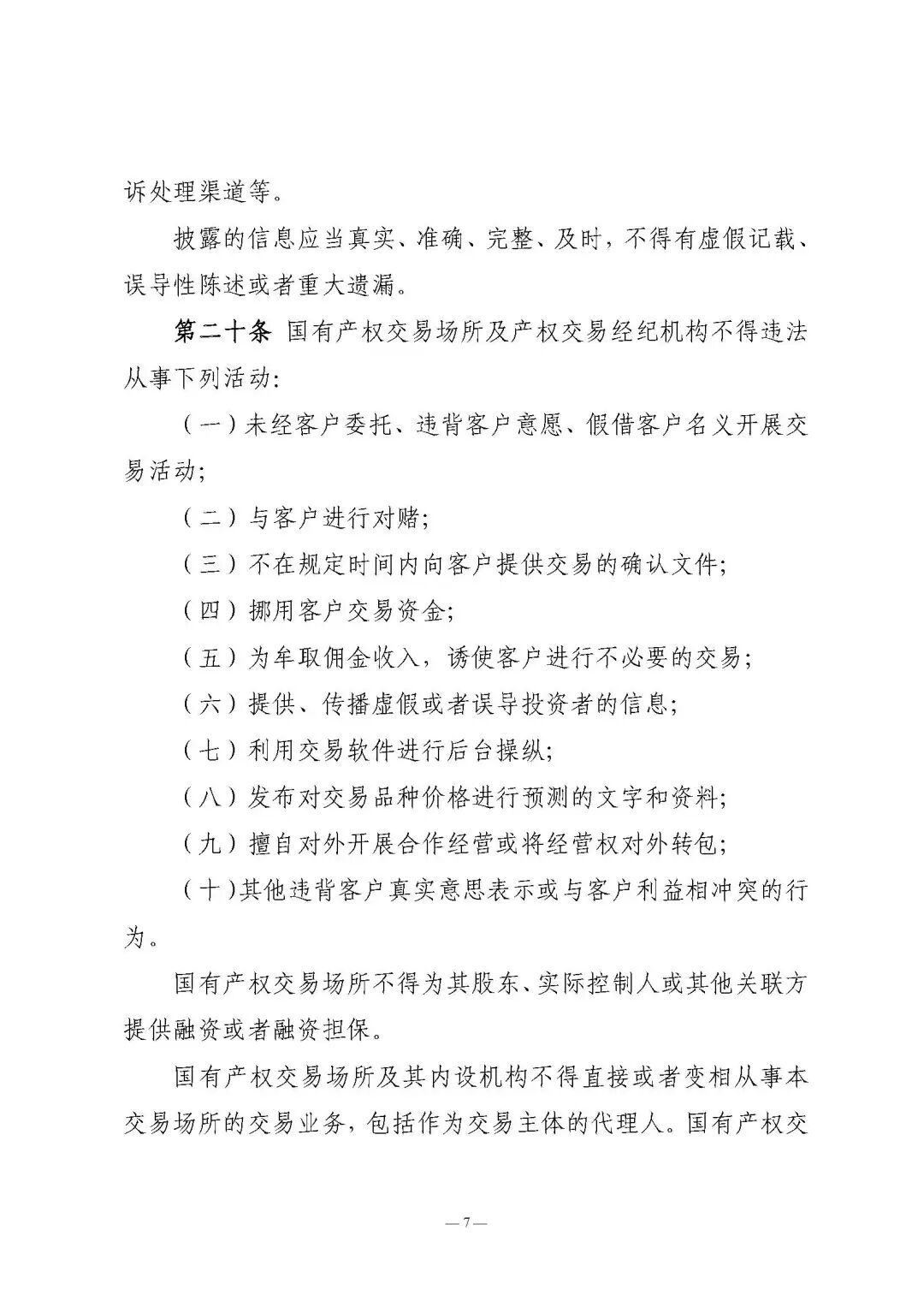 一是明确国有产权交易场所提供的配套服务为产权交易信息咨询、业务培训、纠纷调解等与产权交易活动相关的服务;二是在遵照《交易场所管理办法》“国有产权交易场所及内设机构不得直接或变相从事本场所交易业务”的管理要求之外,同时明确国有产权交易场所“不得作为交易主体的代理人”;三是删除产权交易场所承担的制定经纪机构管理办法、做好经纪机构的准入退出管理和信息公示等涉及对产权交易经纪机构进行监管的相 关内容,并将“产权交易场所经纪机构”调整为“产权交易经纪机构”。